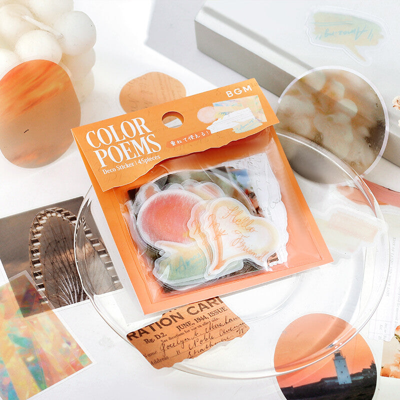 Bring creative flair to your planners, journals, and paper crafts. Crafted by Japanese stationery brand BGM, this delightful sticker set blends translucent tracing paper with classic paper to produce delicate, eye-catching accents perfect for adding a soft pop of colour.